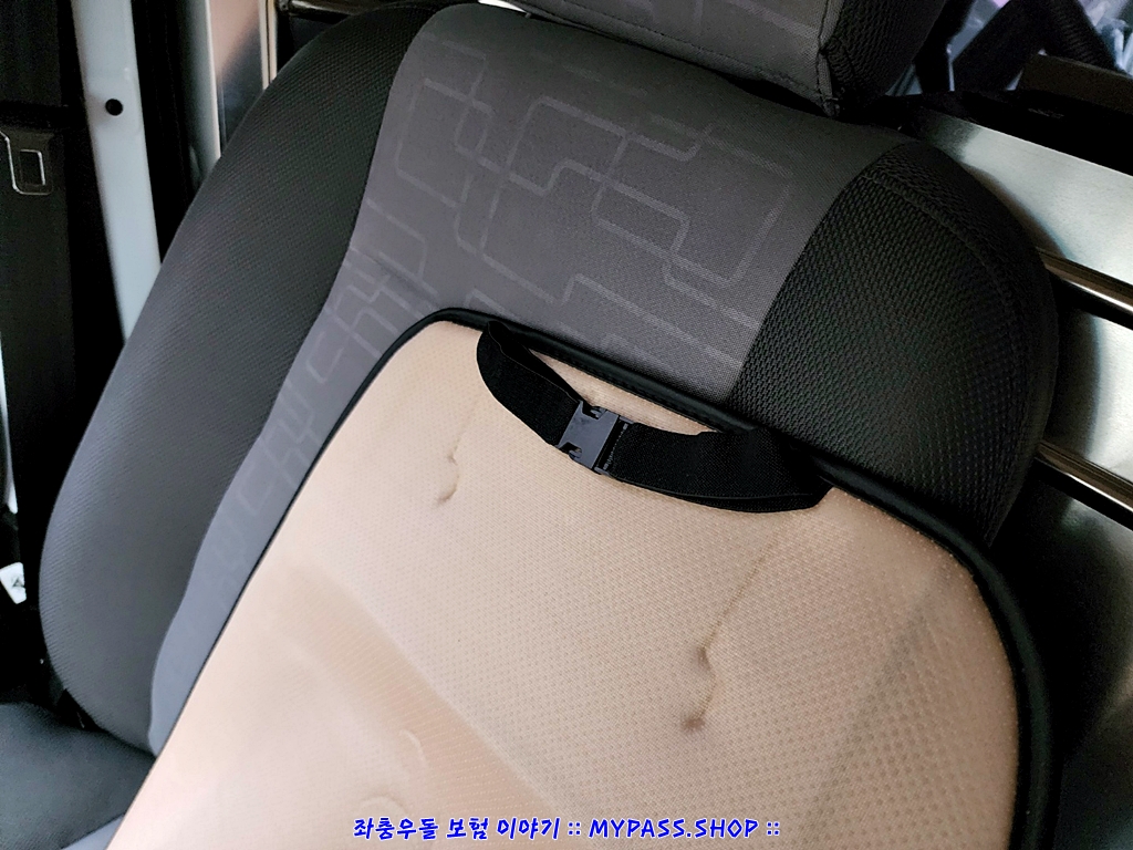 머리 부분은 헤드레스트를 살짝 빼서 밴드로 걸어주면 됩니다.